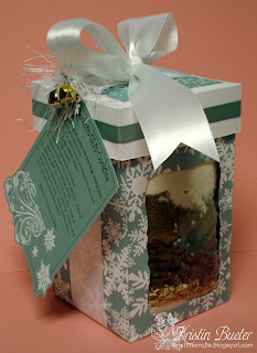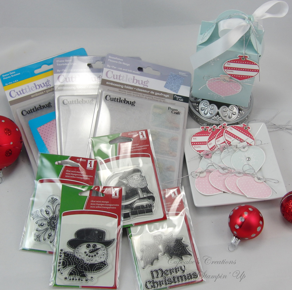 Blog Candy: Link your creation up on this site in the Mr. Linky (below this post) to be entered for a chance to win the little offering from me pictured below! I made a "petite" sized Fold N' Go gift box to hold some ornament tags & embellishments along with a few other goodies that I would like to share and the opportunity to be the next Chic of the Week!! Show us your best Holiday decorated gift box/bag for that special someone and don't forget to provide us with a DIRECT link on your blog or gallery to our Mr. Linky.