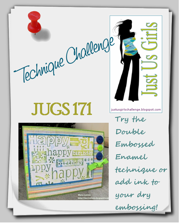 How to play: Please copy and use our graphic on your post. You need to upload your project for this week's challenge to your online blog or to a public photo gallery. Leave a link that goes directly to your project in the Linky Tools form at the bottom of this post. If you upload to online galleries, please use the keyword or tag, JUGS173. After you post to Linky Tools you may also leave a comment here.